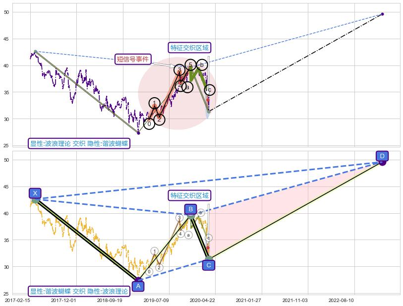 ➢ 三重顶属【短级别信号事件】谐波蝴蝶属【长级别信号事件】长短周期组合信号事件, 短长事件长度比25.93%