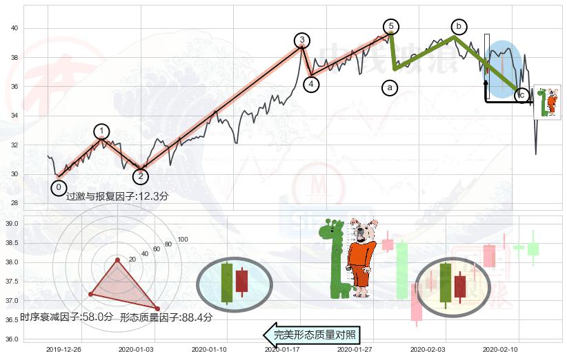 ➢ 看跌(高位倒锤头)流星线 🔜 波浪理论击穿破位C点继续下跌 综合量化分数:47.20 【中性】