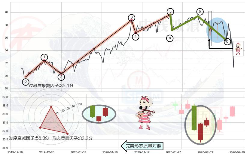 ➢ 谐波螃蟹c拐点下跌阻力 🔜 波浪理论击穿破位C点继续下跌 综合量化分数:34.67 【强烈看空】