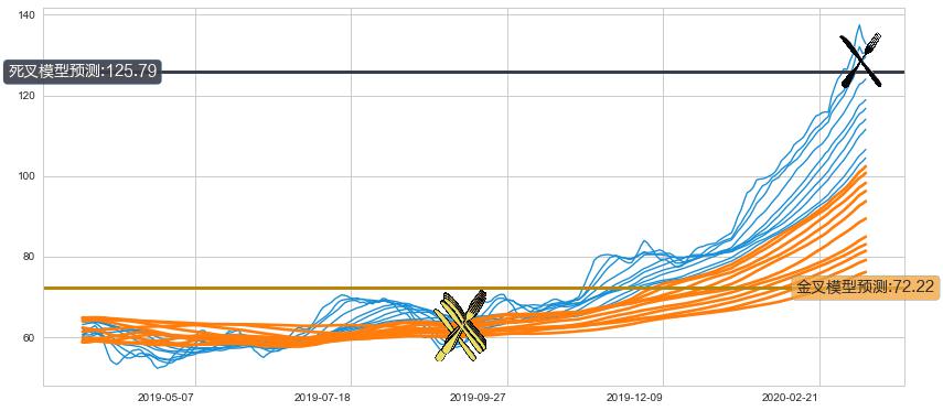 ➢ 60小时均线于(2019-09-09: 64.33)形成【金叉】基于【金叉历史模型】预测金叉后最高波峰价格: 73.64, 金叉后最高价格146.07,已经上涨超出预测最高波峰价格, 预期回调
