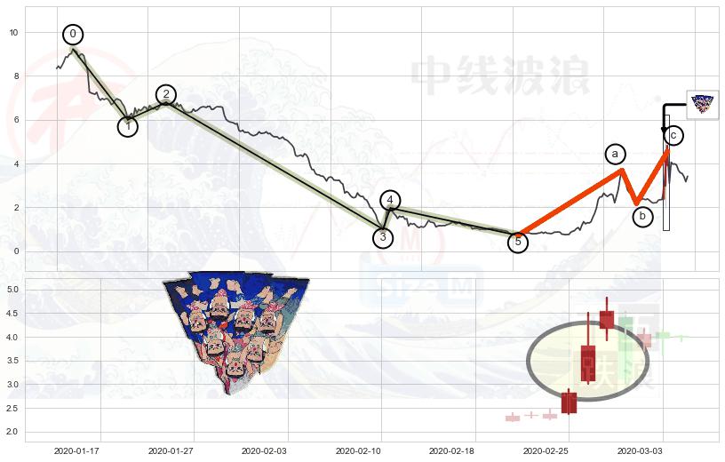 ➢ 波浪理论:猜想达到c点后小反弹终止反转下跌 → 下跌 → 【拐点】临近 → 阶段均值回复结束后继续大周期趋势跟踪