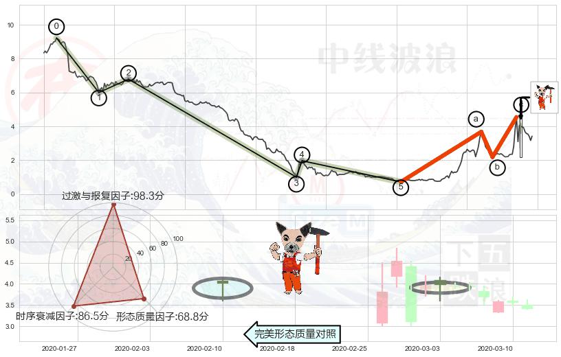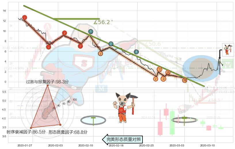 ➢ 🕰 价格走势在2020-03-03至2020-03-03期间形成锤头线(锤子线),残存影响值:6.94