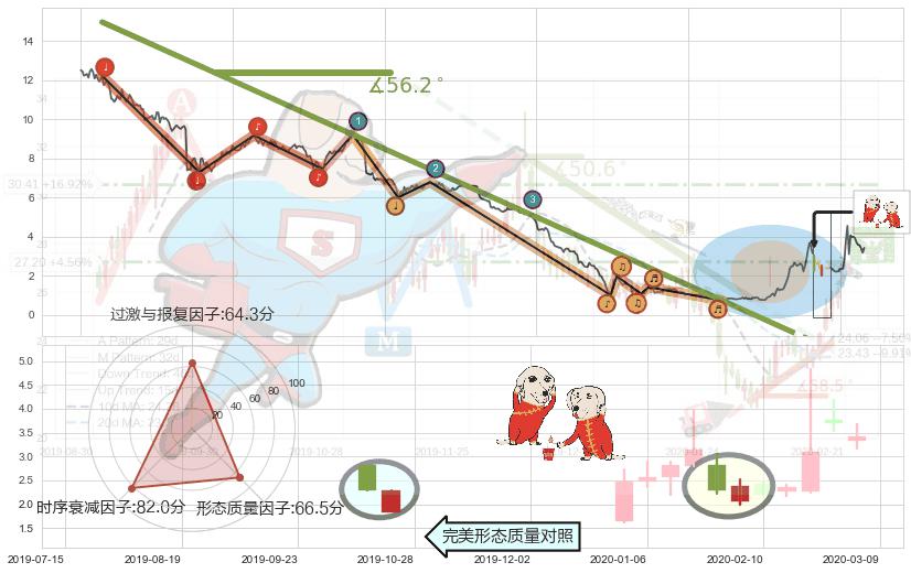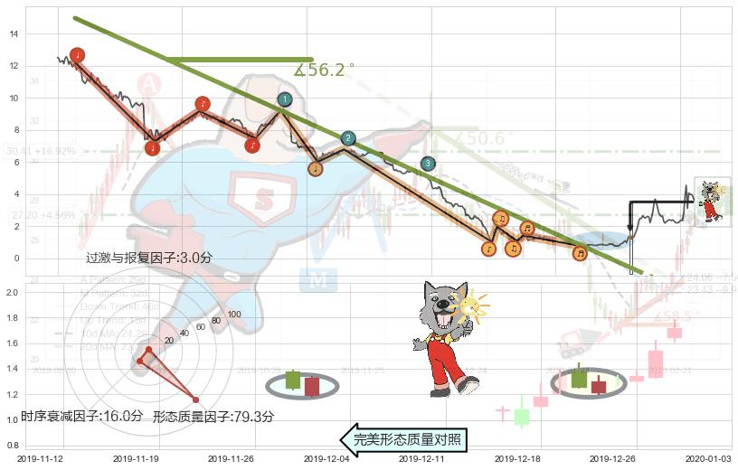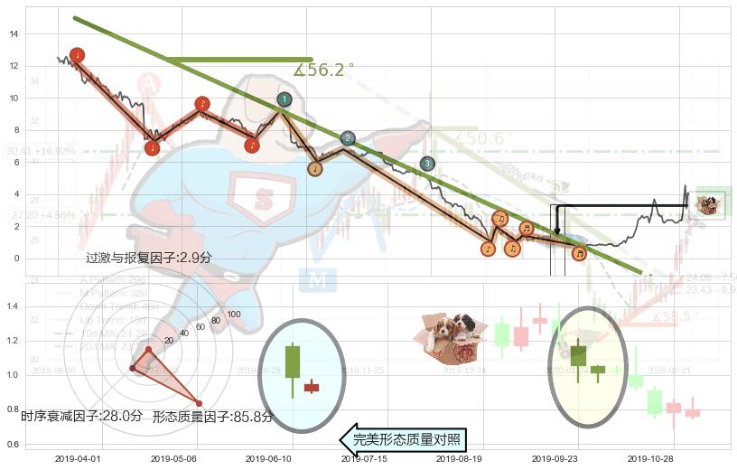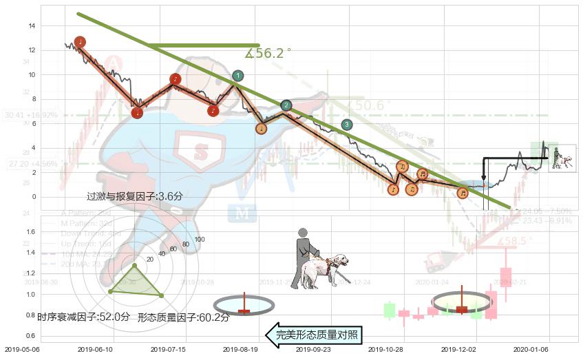 ➢ 2018-03-15-2019-12-18下跌趋势存在反转上涨[机会],其原下跌趋势的阻力位(-2.5310435)已被突破[强支撑信号],原下跌趋势角度: 56.2˚