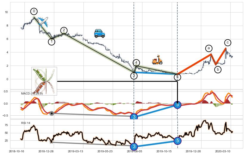 ➣ 第一, 三, 五浪下跌动能逐渐【衰弱变小】,趋势呈现不稳迹象