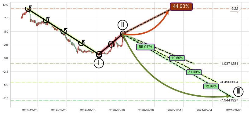 ➣ 循环浪继续向下【平均值】位置(2021-05-21, -4.4906604),匹配聚类样本比例57.18%, 可能性概率31.49%