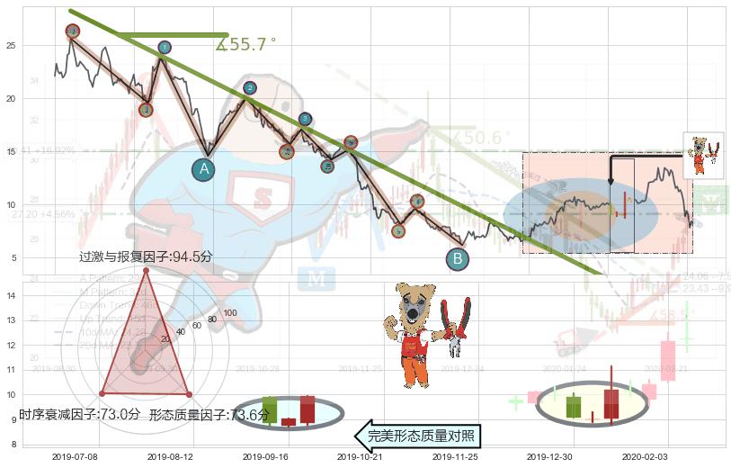 从2018-08-20至2019-09-10,共包含266个交易日,阶段股价下跌-100.70%,阶段股价变动位移路程比: 1 : 5,下跌趋势角度: 55.7