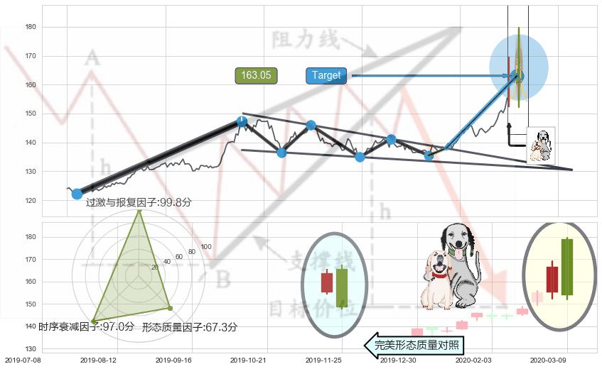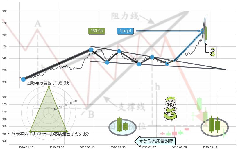 ➢ 收盘价(2020-03-13: 153.94 )→再次回踩→第一根k线高点(2020-03-05: 158.82 )