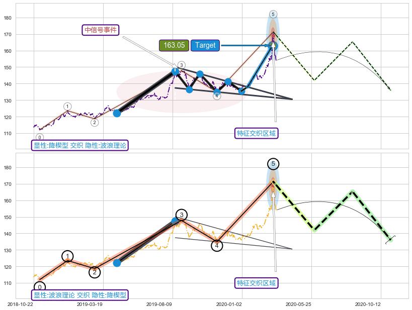➢ 降楔型属【中级别信号事件】波浪理论属【长级别信号事件】中长周期组合信号事件,中长事件长度比55.43%