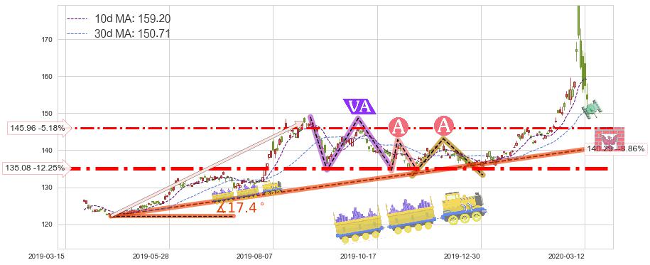 ♘ 支撑价格位145.96,可信任强度58.69%,距离最后交易2020-03-13形成的收盘价格153.94相差 -5.18%