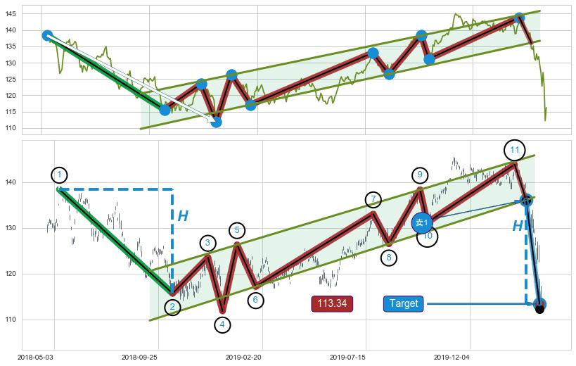 ➣ 高点影线(2020-02-04: 141.63 )→回踩→第二根k线高点(2020-01-30: 141.19 )