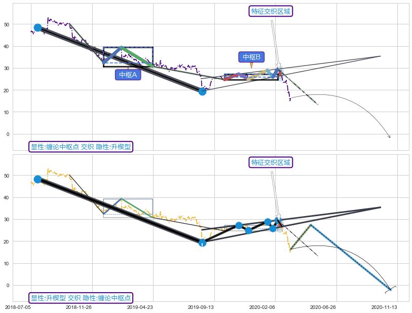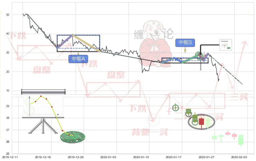 ➣ 缠论中枢点:猜想破位中枢B后持续下拉 → 下跌 → 破位中枢B支撑 → 持续趋势跟踪