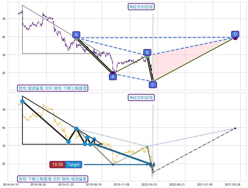 ➢ 谐波鲨鱼与下降三角整理信号事件周期长度级别相同,同周期信号事件