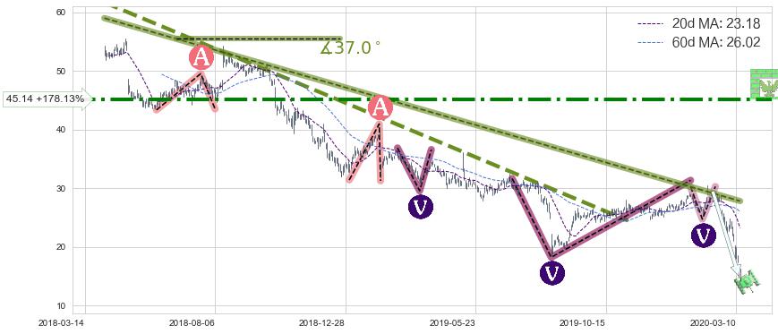 ♘ 阻力价格位45.14,可信任强度77.91%,距离最后交易2020-03-13形成的收盘价格16.23相差 +178.13%