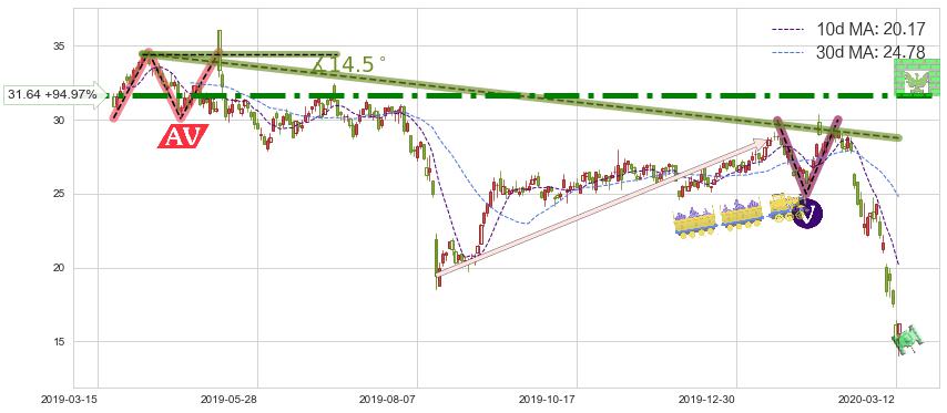 ♘ 阻力价格位31.64,可信任强度96.34%,距离最后交易2020-03-13形成的收盘价格16.23相差 +94.97%
