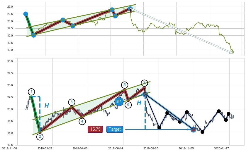 ➣ 最小中继整理跌幅→𝐇: 7.39 (𝐇旗杆的长度:旗杆起点→顶点)