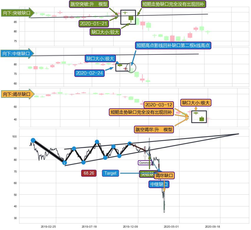 ➢ 2020-03-12形成:向下跳空【竭尽】缺口