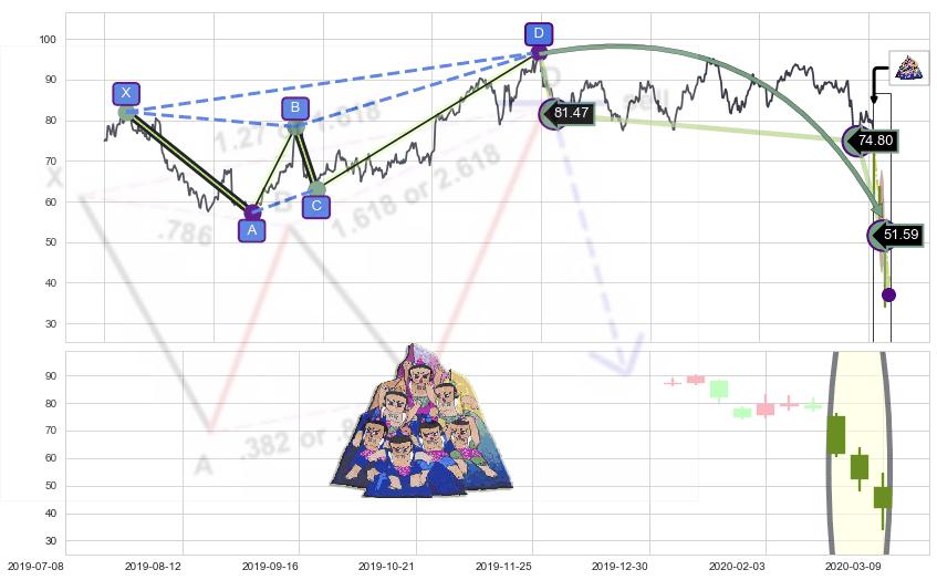 ➣ 谐波蝴蝶:d下跌已到达第❸目标:猜想支撑拉升 → 上涨 →【拐点】机会信号 → 大趋势均值回复