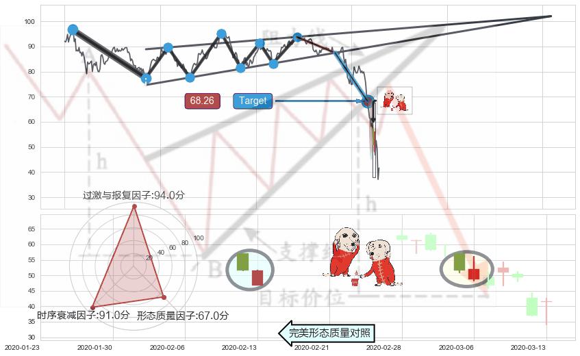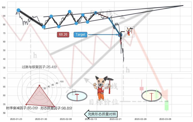 ➢ 🕰 价格走势在2020-03-13至2020-03-13期间形成锤头线(锤子线),残存影响值:7.29