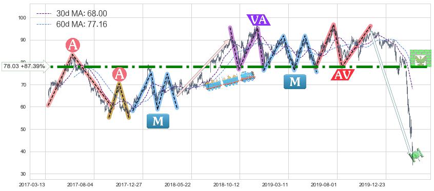 ➣ 2020-01-31到达第❷价格目标位置74.80