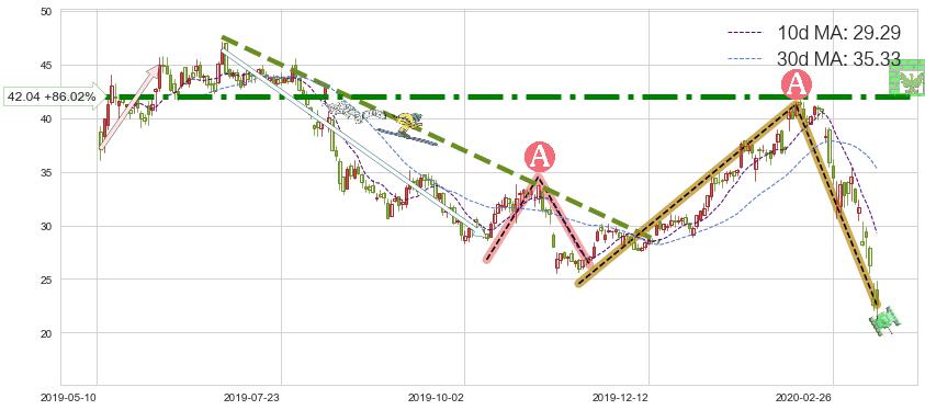 ♘ 阻力价格位42.04,可信任强度95.64%,距离最后交易2020-03-13形成的收盘价格22.60相差 +86.02%
