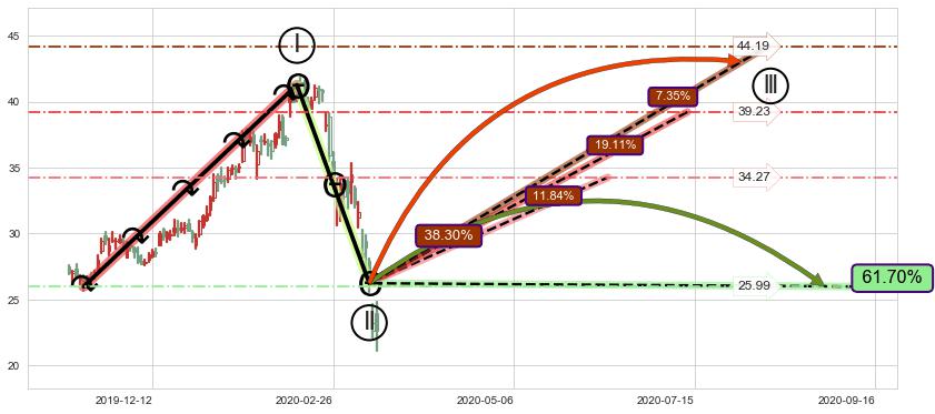 ➢ 大趋势走坏(跌破5浪起点位置)概率61.70%