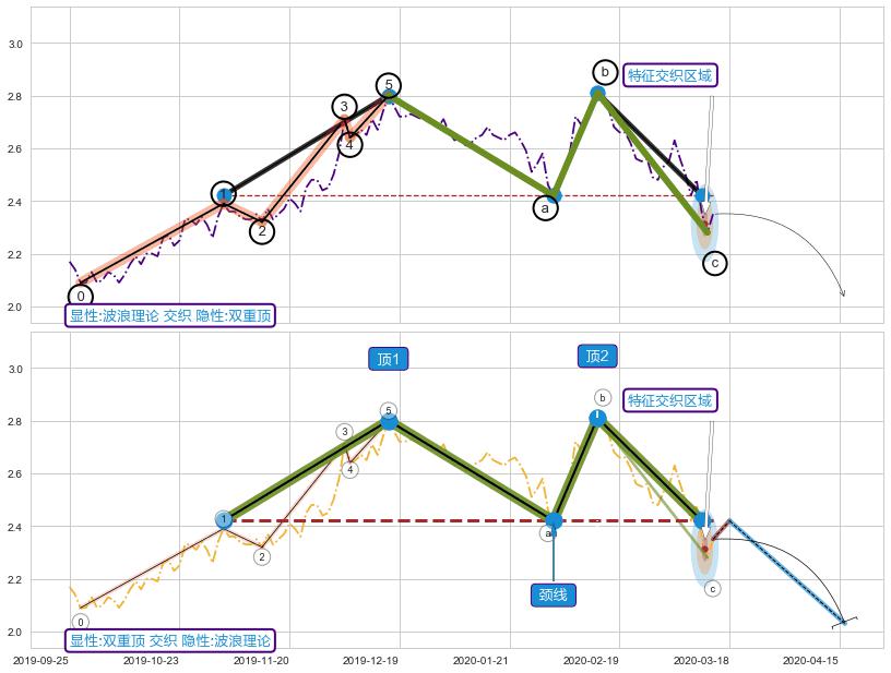 ➢ 波浪理论与双重顶信号事件周期长度级别相同,同周期信号事件