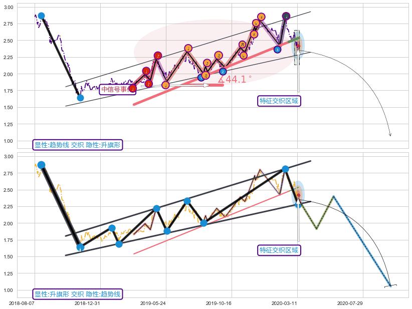➢ 趋势线属【中级别信号事件】升旗形属【长级别信号事件】中长周期组合信号事件,中长事件长度比62.60%