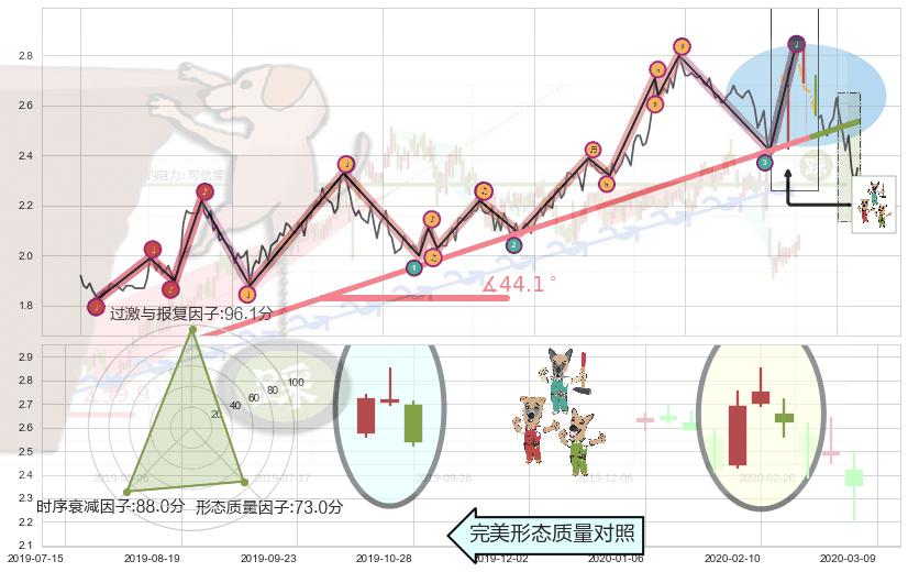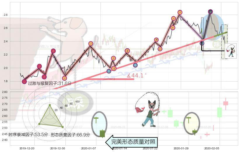 ➢ 2019-03-15-2020-02-21上升趋势存在反转[风险],其原上升趋势的支撑位(2.535)已破位[强阻力信号],原上升趋势角度: 44.1˚