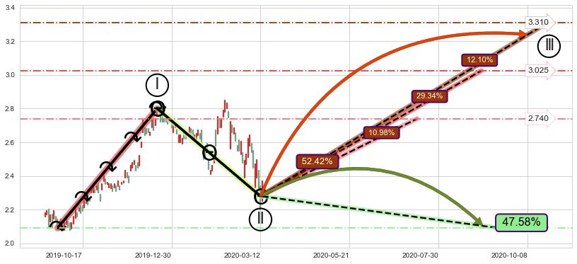 ➢ 循环浪继续向上【最低】位置(2020-07-14, 2.740),匹配聚类样本比例20.95%, 可能性概率10.98%