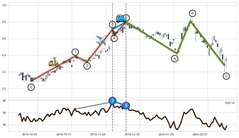 ➢ 波浪理论:猜想达到c点后小回调终止反转上涨 → 上涨 → 【拐点】临近 → 阶段均值回复结束后继续大周期趋势跟踪