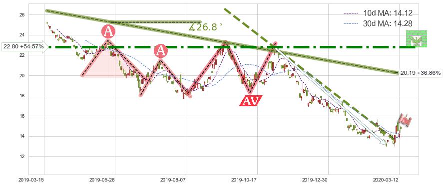 ♘ 阻力价格位22.80,可信任强度96.73%,距离最后交易2020-03-13形成的收盘价格14.75相差 +54.57%