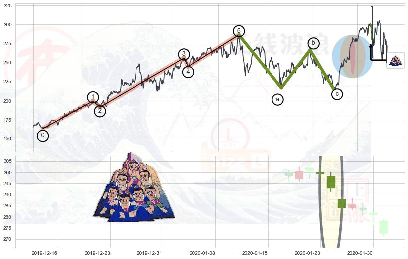 ➣ 波浪理论:猜想达到c点后小回调终止反转上涨 → 上涨 → 【拐点】临近 → 阶段均值回复结束后继续大周期趋势跟踪