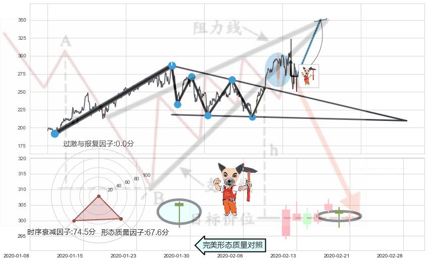 ➢ 🕰 价格走势在2020-02-20至2020-02-20期间形成锤头线(锤子线),残存影响值:3.07