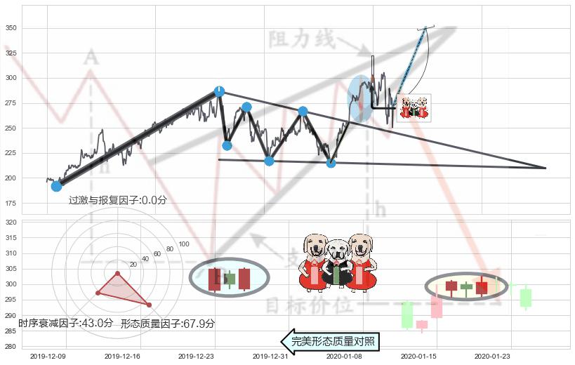 ➢ 🕰 价格走势在2020-01-23至2020-01-27期间形成三空阴线,残存影响值:3.41
