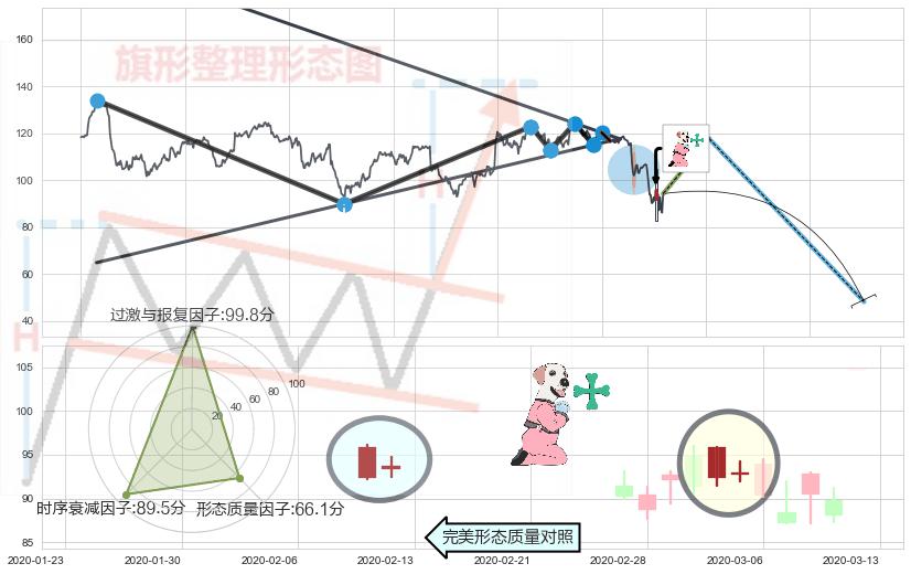 ➢ 升旗形:下跌目标target已达成:猜想强支撑位临近,预期反弹上涨(均值回复)