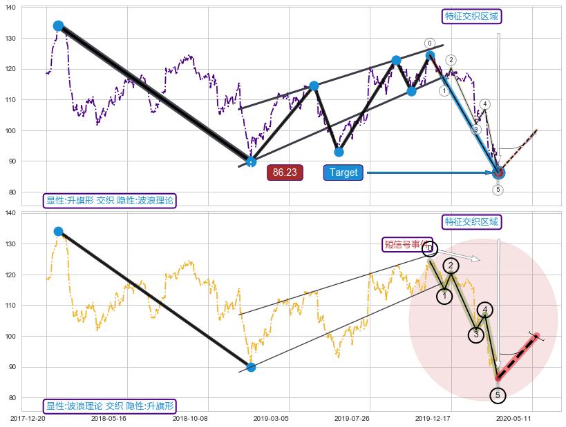➣ 好友反攻 + 升旗形target支撑拐点上涨信号叠加后【目标达成率】低,【看多】信号叠加【存续影响大】