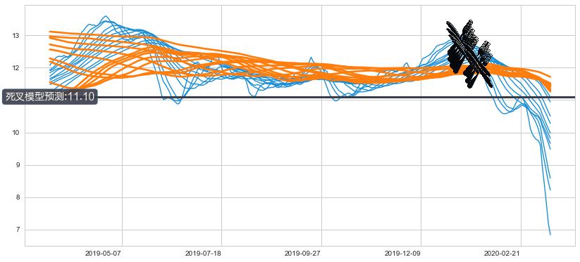 ➣ 75小时均线于(2020-01-21: 12.02)形成【死叉】基于【死叉历史模型】预测死叉后最低波谷价格: 10.55, 死叉后最低价格6.52,已经下跌超出预测最低波谷价格, 预期反弹