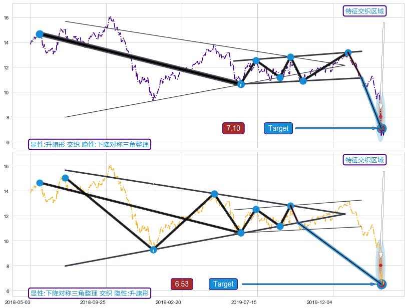 ➣ 旭日东升 + 下降对称三角整理target支撑拐点上涨信号叠加后【目标达成率】极低,【看多】信号叠加【存续影响极大】