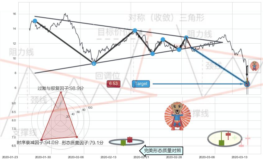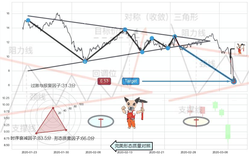 ➢ 锤头线(锤子线) 🔜 下降对称三角整理target支撑拐点上涨 综合量化分数:50.92 【中性】