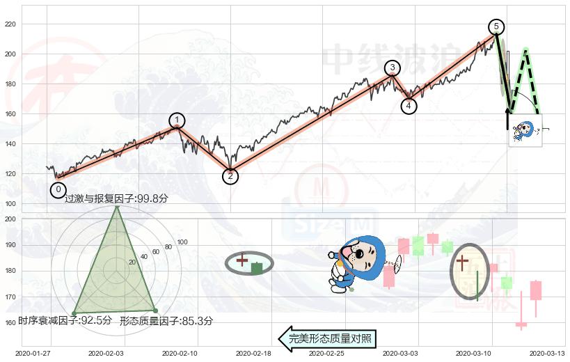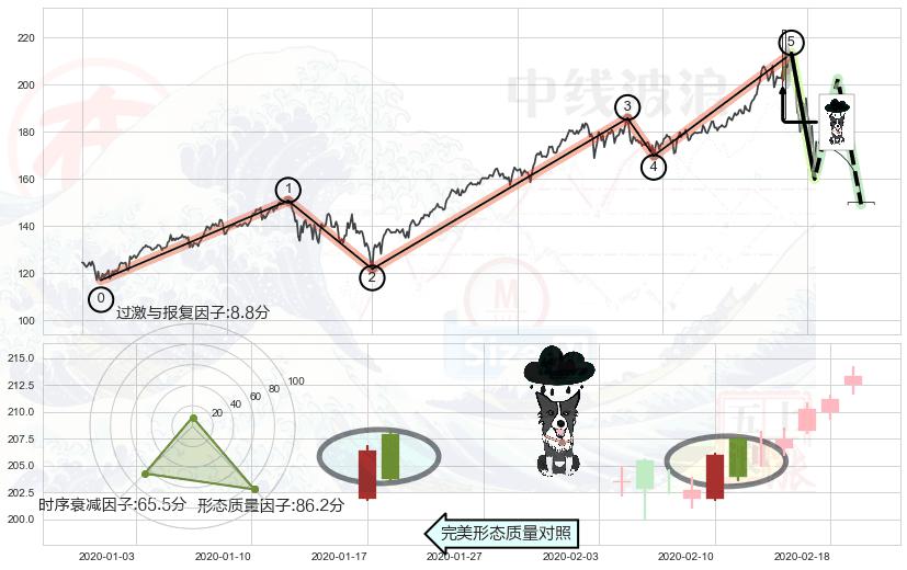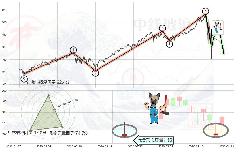 ➢ 顶部尽头线(下山虎) + 波浪理论上涨浪:浪5回调拐点信号叠加后【反向回撤率】中等,【看空】信号叠加【存续影响中等】
