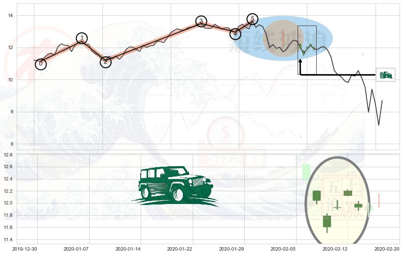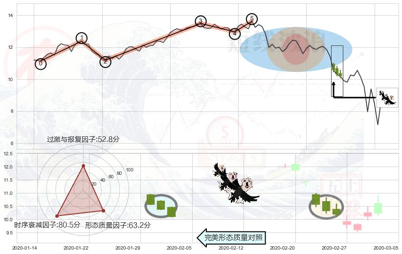 ➢ 🕰 价格走势在2020-02-07至2020-02-13期间形成高档五阴线,残存影响值:-2.19
