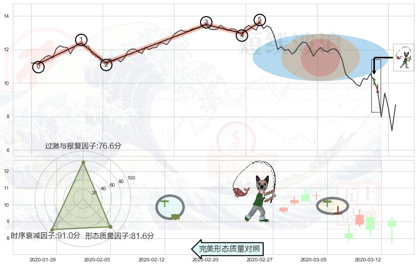 ➢ 🕰 价格走势在2020-03-05至2020-03-06期间形成吊颈线(上吊线),残存影响值:-4.31
