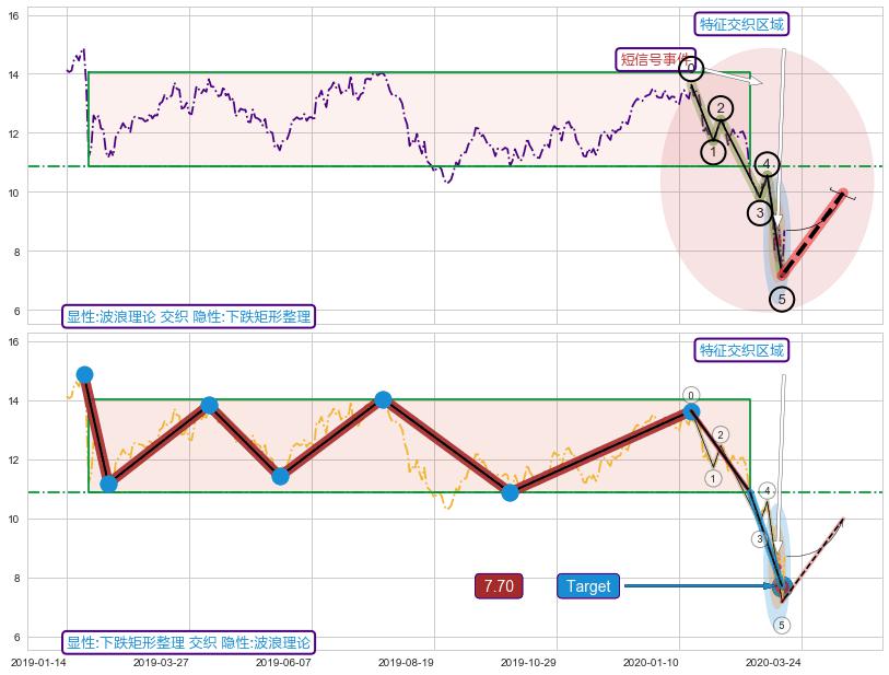 ➢ 波浪理论属【短级别信号事件】下跌矩形整理属【长级别信号事件】长短周期组合信号事件, 短长事件长度比14.29%