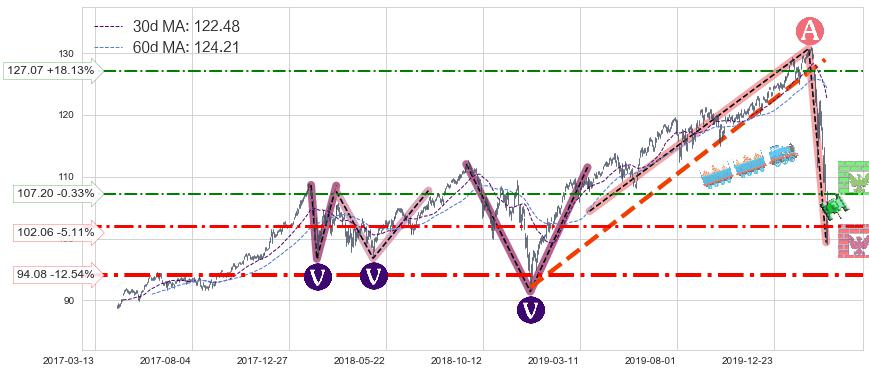 ♘ 阻力价格位127.07,可信任强度54.64%,距离最后交易2020-03-13形成的收盘价格107.56相差 +18.13%