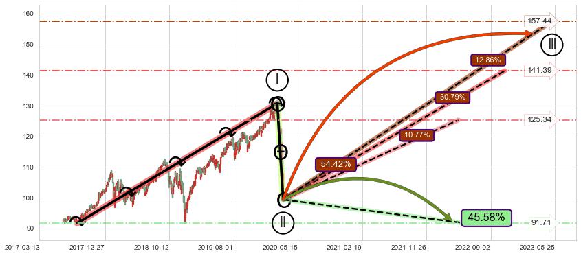 ➣ 大趋势循环浪继续向上概率54.42%