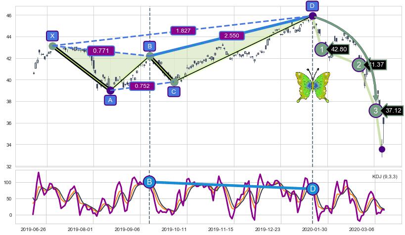 ➣ 已完成【蝴蝶】形态起点X: 2019-07-01, 终点D: 2020-01-17, 共140交易日