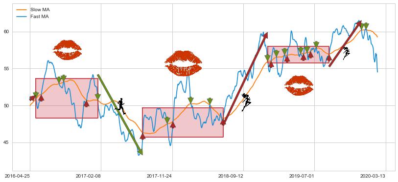 2018-12-19至2019-08-28 慢线与快线多次接触,存在上下穿越,有缠绕