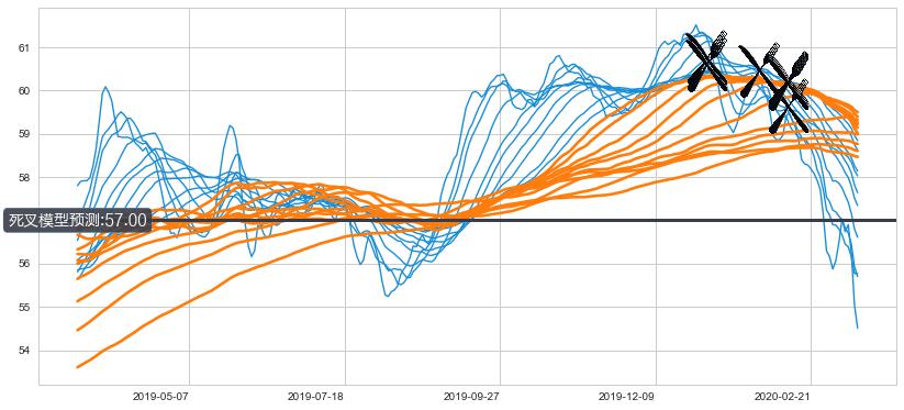 ➣ 70小时均线于(2020-02-10: 60.14)形成【死叉】基于【死叉历史模型】预测死叉后最低波谷价格: 56.52, 死叉后最低价格51.20,已经下跌超出预测最低波谷价格, 预期反弹