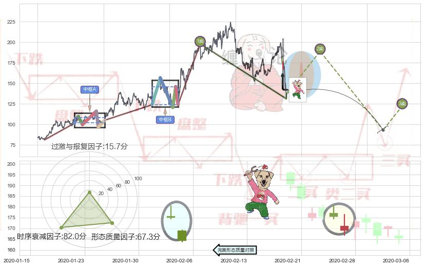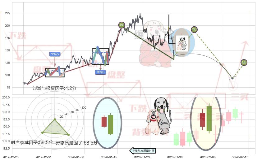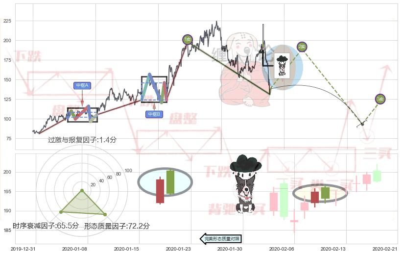 ➢ 🕰 价格走势在2020-02-18至2020-02-20期间形成黄昏之星(夜星),残存影响值:-3.30
