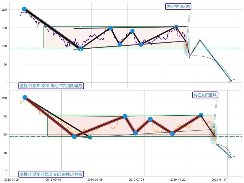 ➢ 升旗形与下跌矩形整理信号事件周期长度级别相同,同周期信号事件